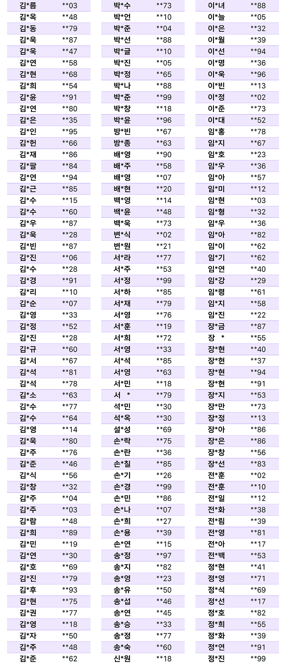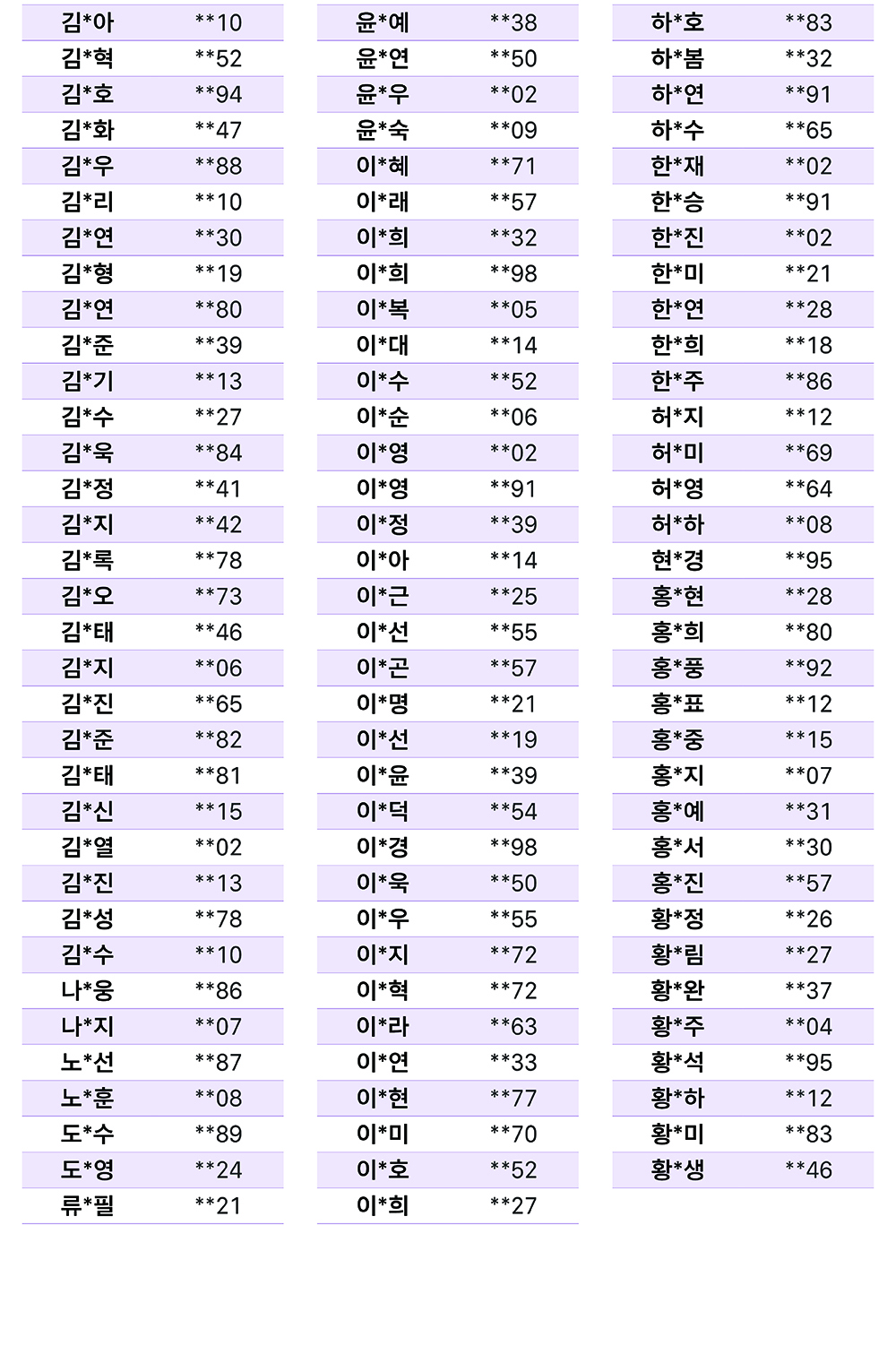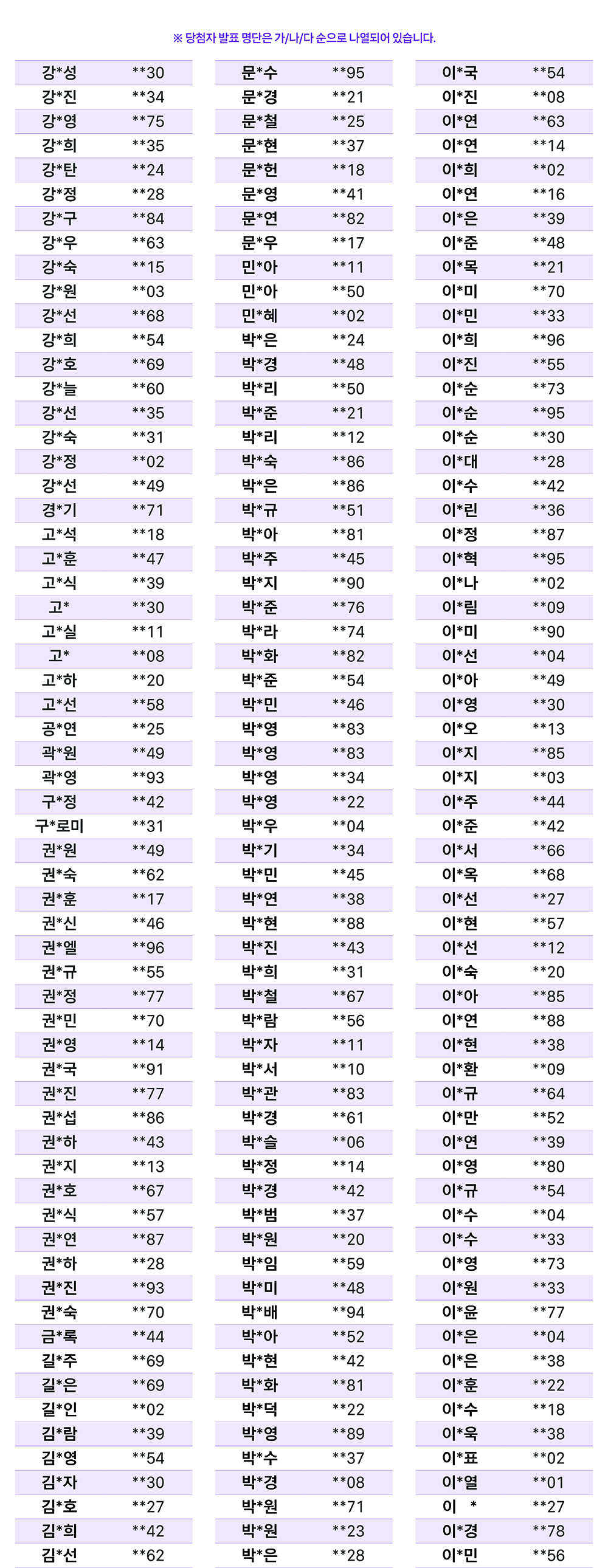 당첨자 리스트
